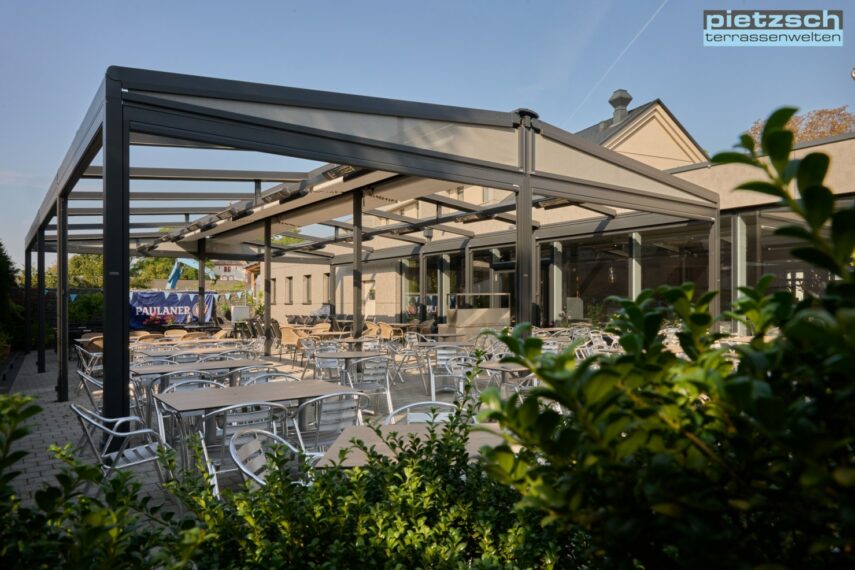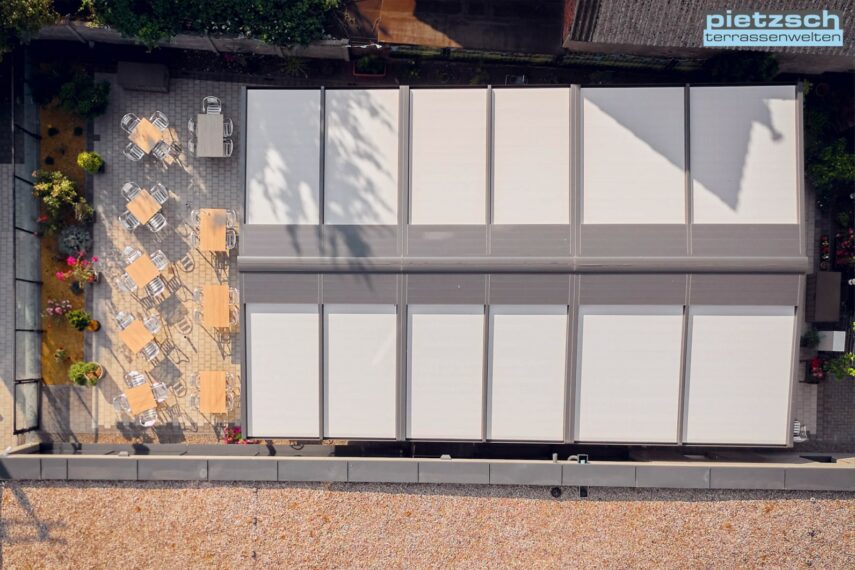 Die maßgeschneiderte Gastromarkise bietet Platz für rund 150 Gäste und hält, was sie verspricht: windstabil, wasserdicht und mit UV-Schutz ausgestattet. Ob Sonne oder Regen – hier genießen die Gäste die frische Luft in voller Sicherheit und bei maximalem Komfort.![]()